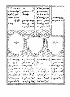 This award blank was designed by Mistress Rowan Perigrynne based on several 16th century Persian manuscripts. The general design is based on pages from the collected works of 'Ali Shi Nawa'i (c 1527) and the decorative patterns are drawn from paintings by Khamsa of Nizami (c 1540) and ither contemporary artists. In fact, the style of Persian manuscripts changed very little over the preceding centuries, making this design suitable for eastern personas from many eras.